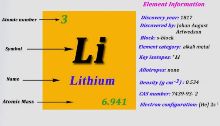 Lithium is a chemical element with the symbol Li and atomic number 3. It is a soft, silvery-white alkali metal. Under standard conditions, it is the lightest metal and the lightest solid element.
